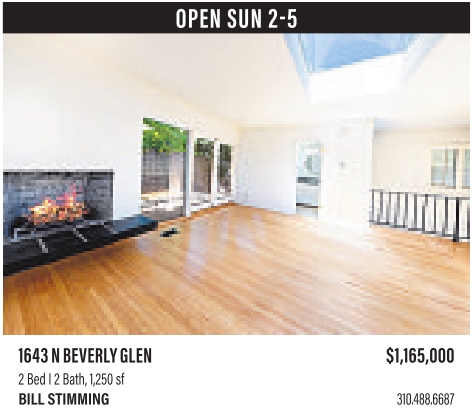 yes OPEN SUN 2-5 1643 N BEVERLY GLEN $1,165,000 2 BedI2 Bath, 1,250sf BILL STIMMING 310.488.6687 See also