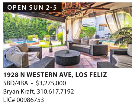 OPEN SUN 2-5 1928 N WESTERN AVE, LOS FELIZ 5BD/4BA • $3,275,000 Bryan Kraft, 310.617.7192 LIC# 00986753 See also