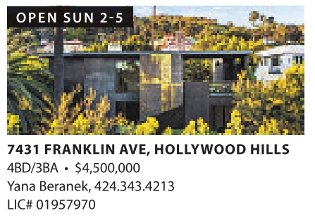 OPEN SUN 2-5 7431 FRANKLIN AVE, HOLLYWOOD HILLS 4BD/3BA • $4,500,000 Yana Beranek, 424.343.4213 LIC# 01957970 See also