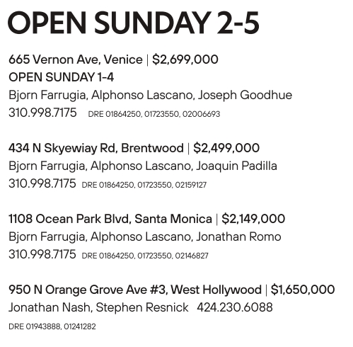Bjorn Farrugia, Alphonso Lascano, Joseph Goodhue 310.998.7175 DRE 01864250, 01723550, 02006693