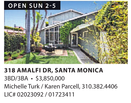 OPEN SUN 2-5 318 AMALFI DR, SANTA MONICA 3BD/3BA • $3,850,000 Michelle Turk / Karen Parcell, 310.382.4406 LIC# 02023092 / 01723411 See also