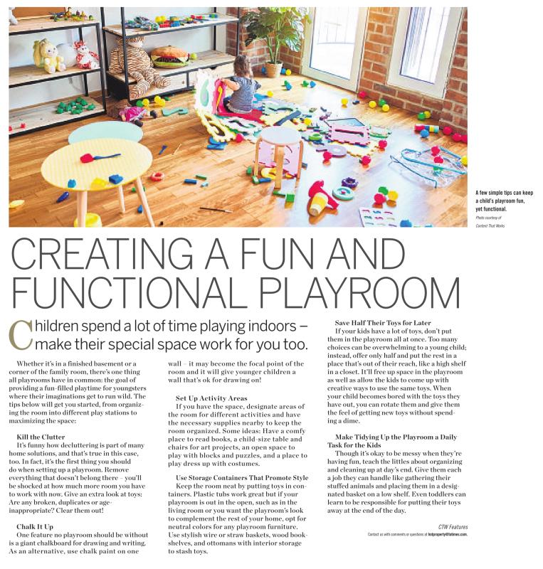 Whether it’s in a finished basement or a corner of the family room, there’s one thing all playrooms have in common: the goal of providing a fun-filled playtime for youngsters where their imaginations get to run wild. The tips below will get you started, from organizing the room into different play stations to maximizing the space:
