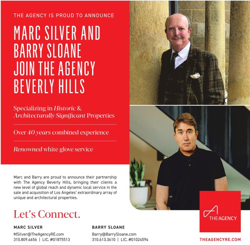 Marc and Barry are proud to announce their partnership with The Agency Beverly Hills, bringing their clients a new level of global reach and dynamic local service in the sale and acquisition of Los Angeles’ extraordinary array of unique and architectural properties.