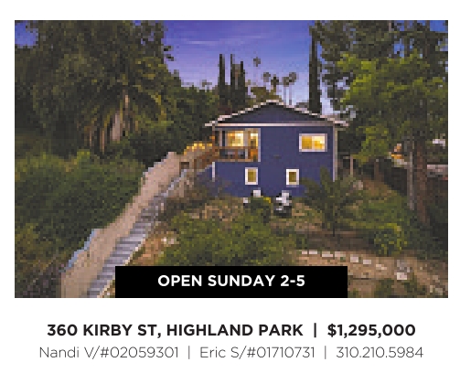 OPEN SUNDAY 2-5 360 KIRBY ST, HIGHLAND PARK | $1,295,000 Nandi V/#02059301 | Eric S/#01710731 | 310.210.5984 See also