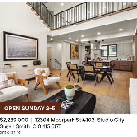 OPEN SUNDAY 2-5 $2,239,000 | 12304 Moorpark St #103, Studio City Susan Smith 310.415.5175 DRE 01187140 See also