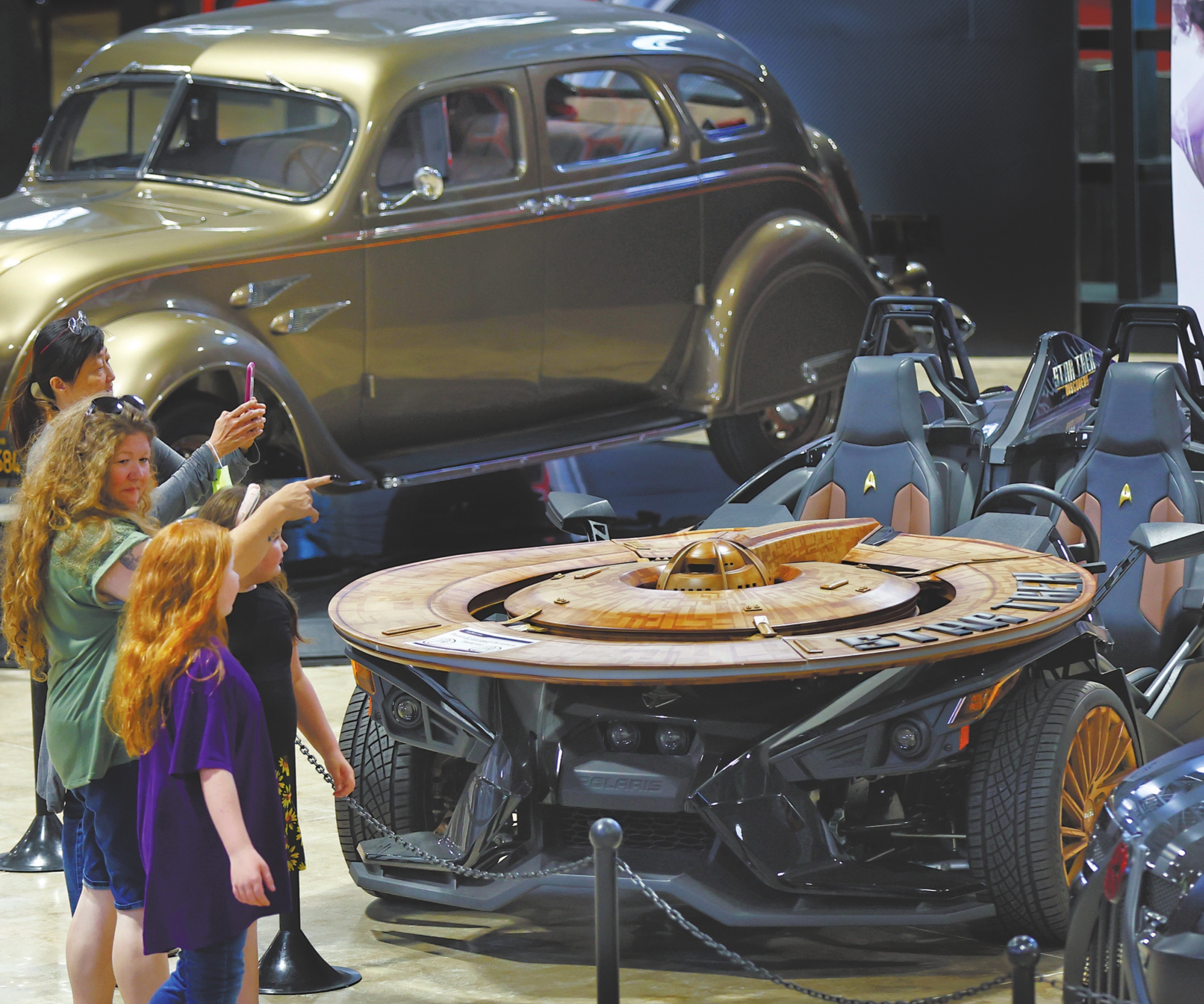 Guests look at the Star Trek U.S.S. Discovery made from a Polaris Slingshot by West Coast Customs at the San Diego Automotive Museum on Tuesday, June 27, 2023. The automotive museum was named Best Museum in the 2024 San Diego’s Best Union-Tribune Readers Poll. See also