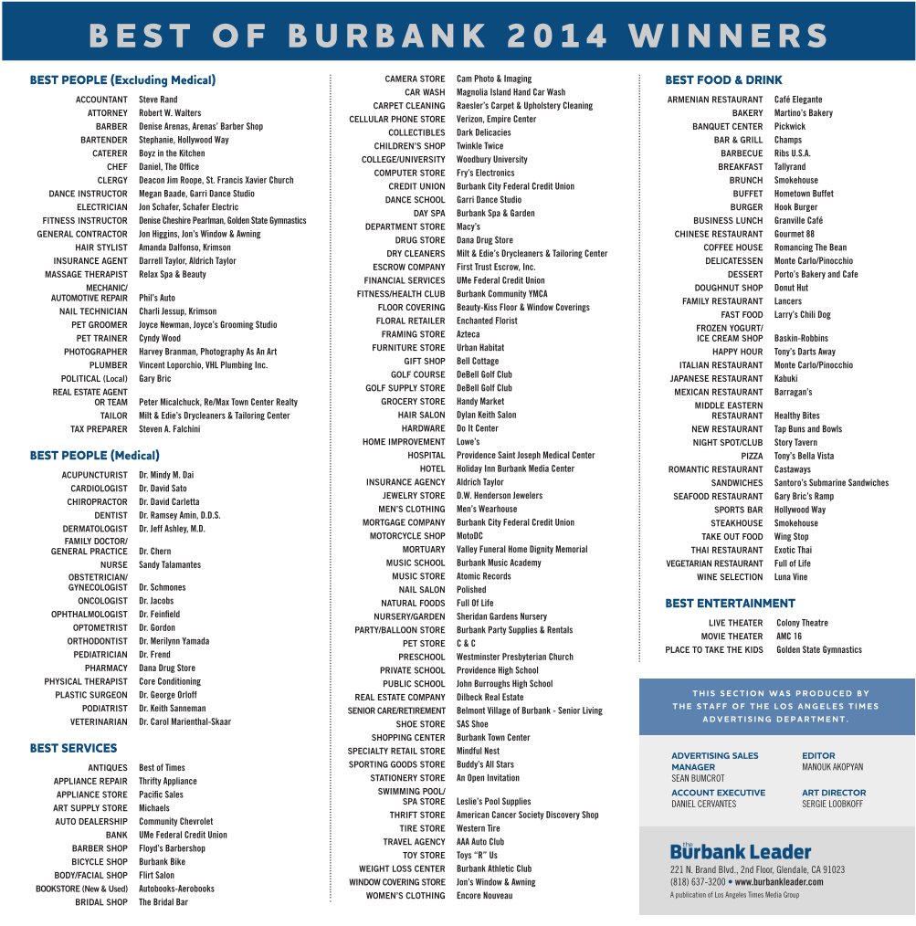 BEST OF BURBANK 2014 WINNERS