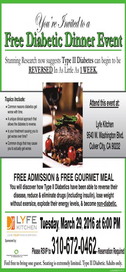 Feel free to bring one guest. Seating is extremely limited. Type II Diabetic Adults only.